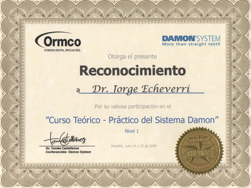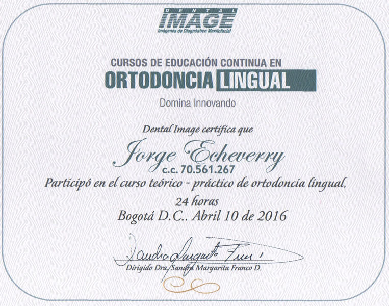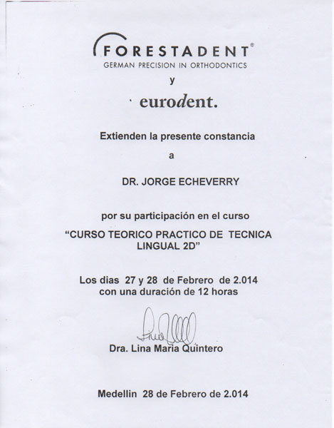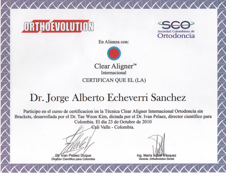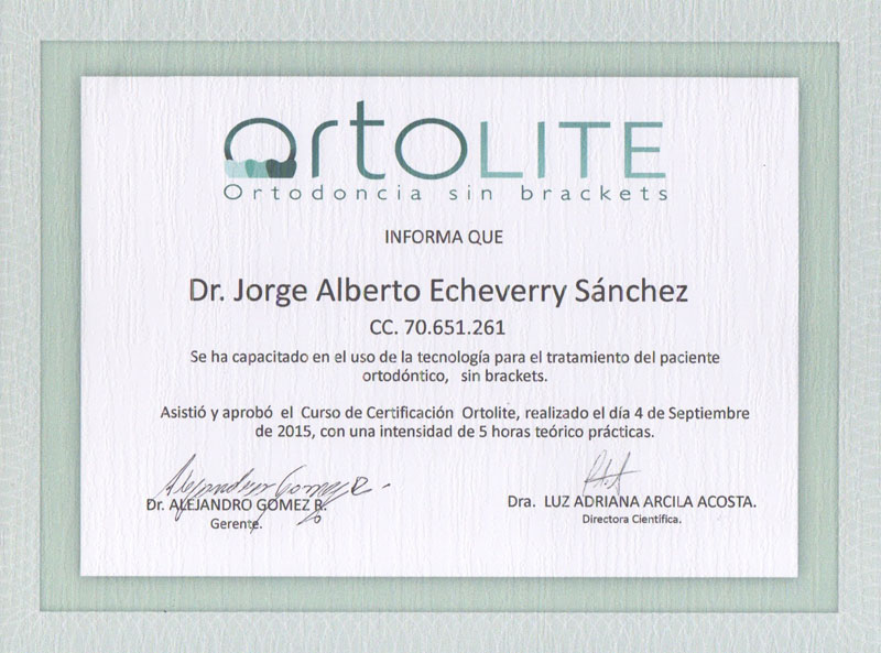 Luego de graduarse como odontólogo en la universidad CES de Medellín, el Doctor Jorge Echeverri, se especializó en ortodoncia en la universidad de Sao Paulo Brasil.