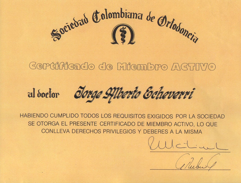 - Miembro activo Sociedad Colombiana de Ortodoncia.